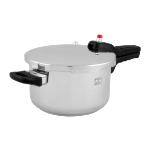 این زودپز با قطر ۲۲ سانتیمتر و ارتفاع ۸.۳ سانتیمتر، طراحی جمعوجوری داشته و حجمی معادل ۳ لیتر دارد. وزن این محصول ۲۱۶۸±۵ گرم بوده که نشاندهنده کیفیت بالای مواد اولیه استفادهشده در ساخت آن است. بدنه و در این دیگ از جنس استنلس استیل ۱۸/۱۰ تولید شده است که به دلیل مقاومت در برابر زنگزدگی و خش، طول عمر بالایی دارد و به حفظ سلامت غذا کمک میکند.